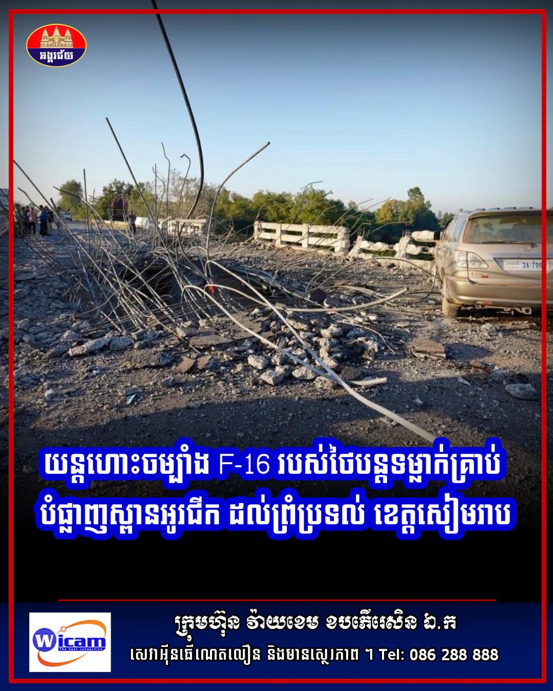 យន្តហោះចម្បាំង F-16 របស់ថៃបន្តទម្លាក់គ្រាប់បំផ្លាញស្ពានអូរជីក នៅស្រុកចុងកាល ខេត្តឧត្តរមានជ័យ